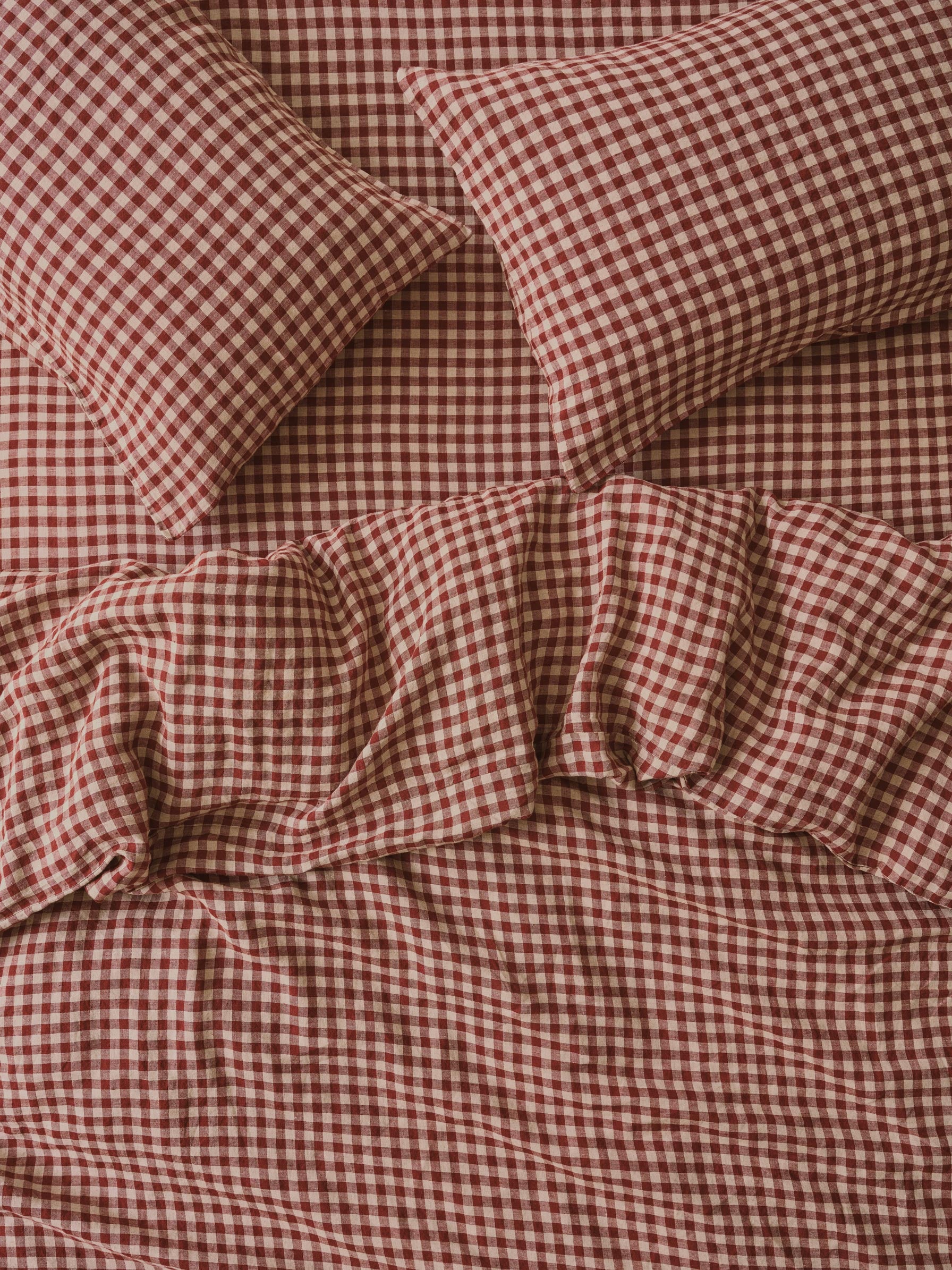 Rhubarb Gingham Linen Blend Duvet Cover